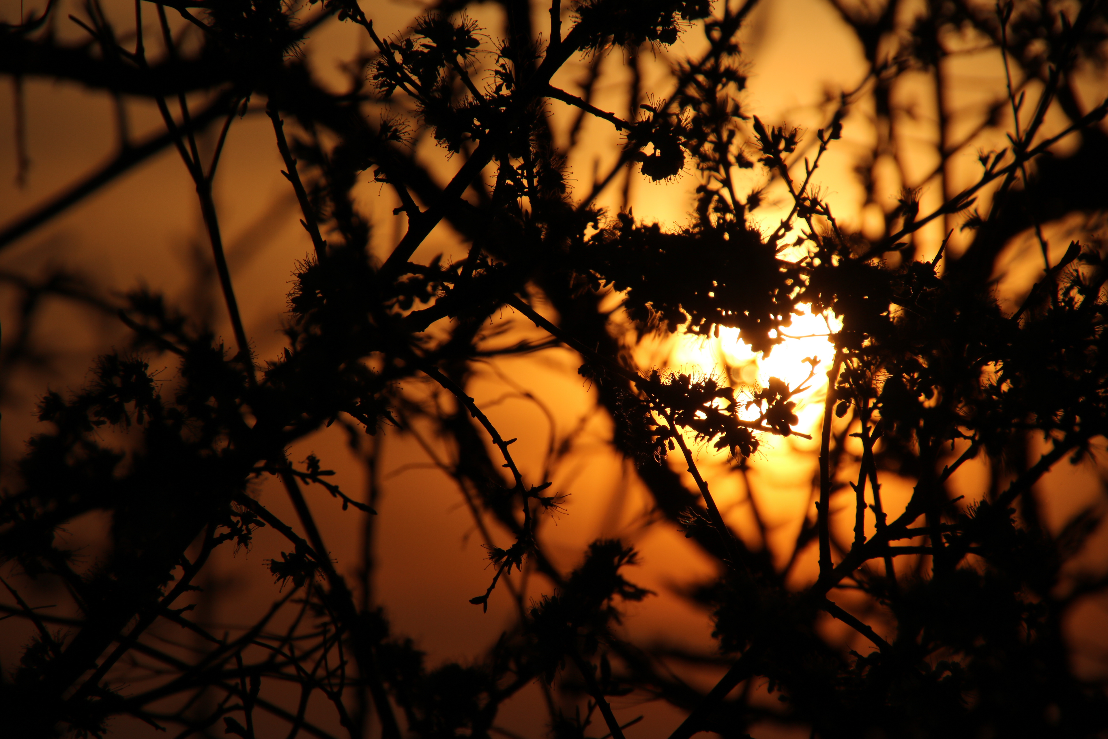 Silhouetted Sunset Covered in Branches